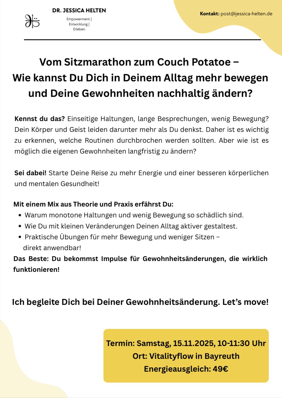 Wo: VitalityFlow, Egerländer Straße 4, 95448 Bayreuth